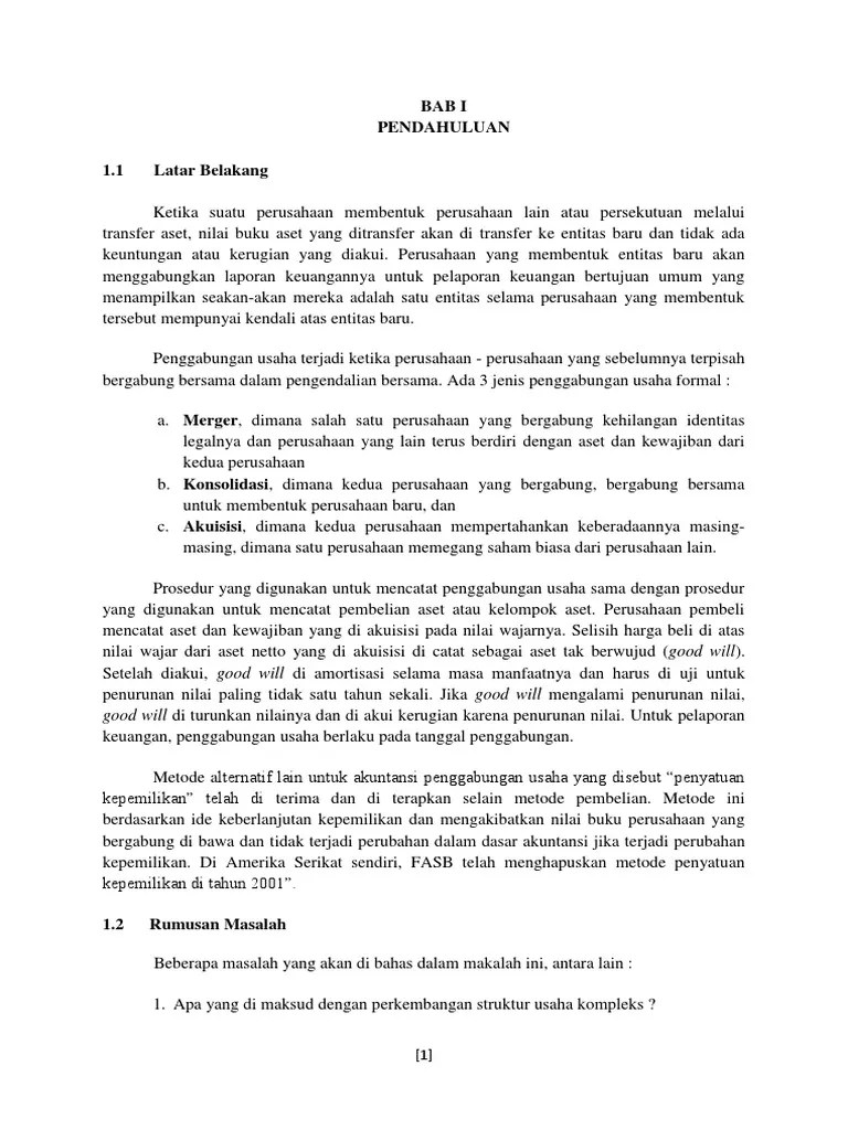 Contoh Makalah Penggabungan Usaha : Artikel Lepas Makalah Manajemen Keuangan Merger Dan Reorganisasi - Tentang penggabungan, peleburan dan pengambilalihan perseroan terbatas.. Merger merupakan penggabungan perusahaan biasanya antara dua perusahaan atau lebih. Pembelian oleh salah satu perusahaan yang bergabung terhdap yang lain. Tentang penggabungan, peleburan dan pengambilalihan perseroan terbatas. Contoh, bank exim + bank bdn = bank mandiri. Aspek perpajakan dalam rangka merger dan akuisisi makalah disusun untuk memenuhi .